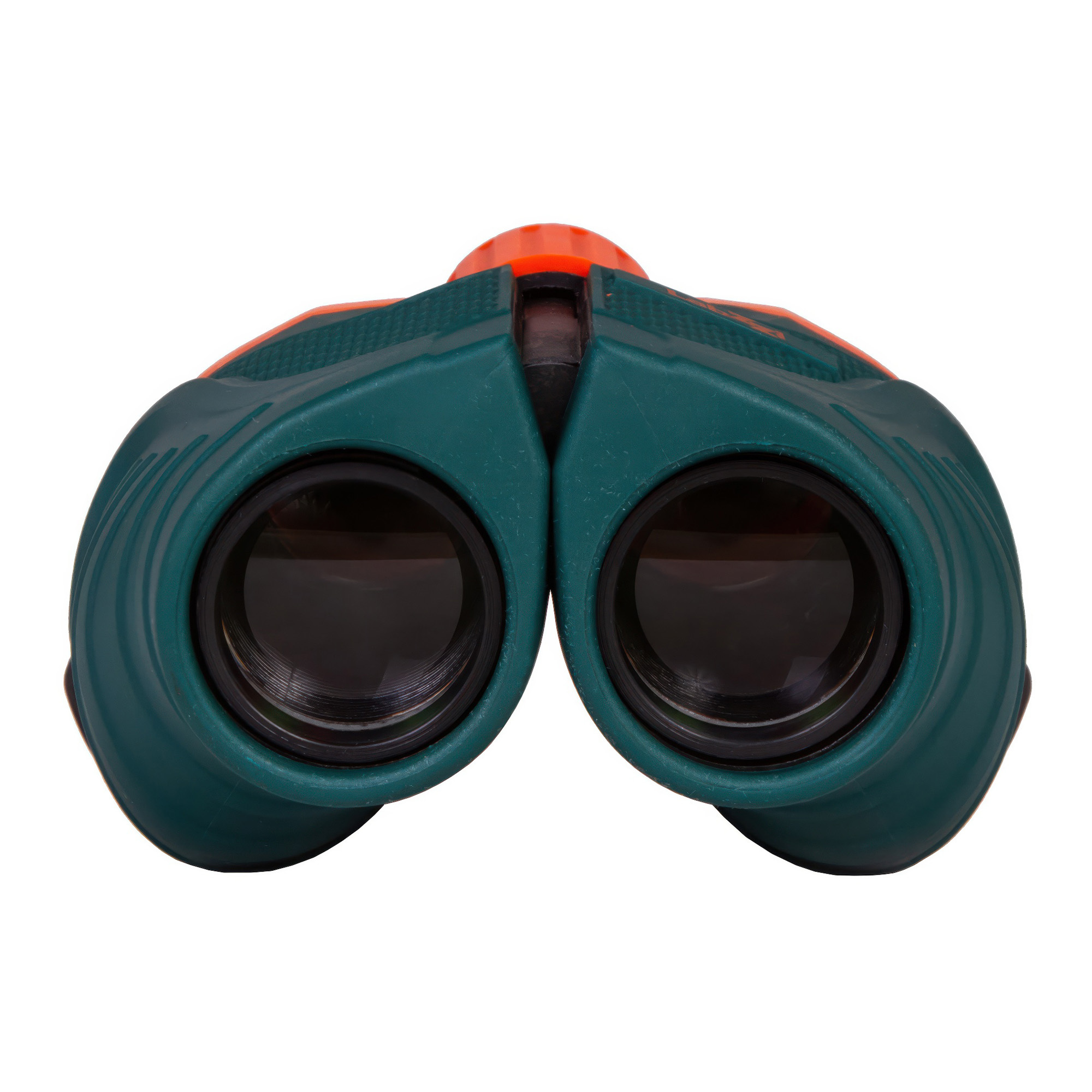 Корпус бинокля Levenhuk LabZZ B6 разработан с учетом потребностей детей: он легкий, компактный и удобный в использовании даже маленькими руками. Корпус изготовлен из прочного пластика, который отличается высокой устойчивостью к ударам и внешним воздействиям. Его обрезиненная поверхность защищает от случайных повреждений и обеспечивает надежный захват, что особенно важно при активных играх и приключениях на улице.
