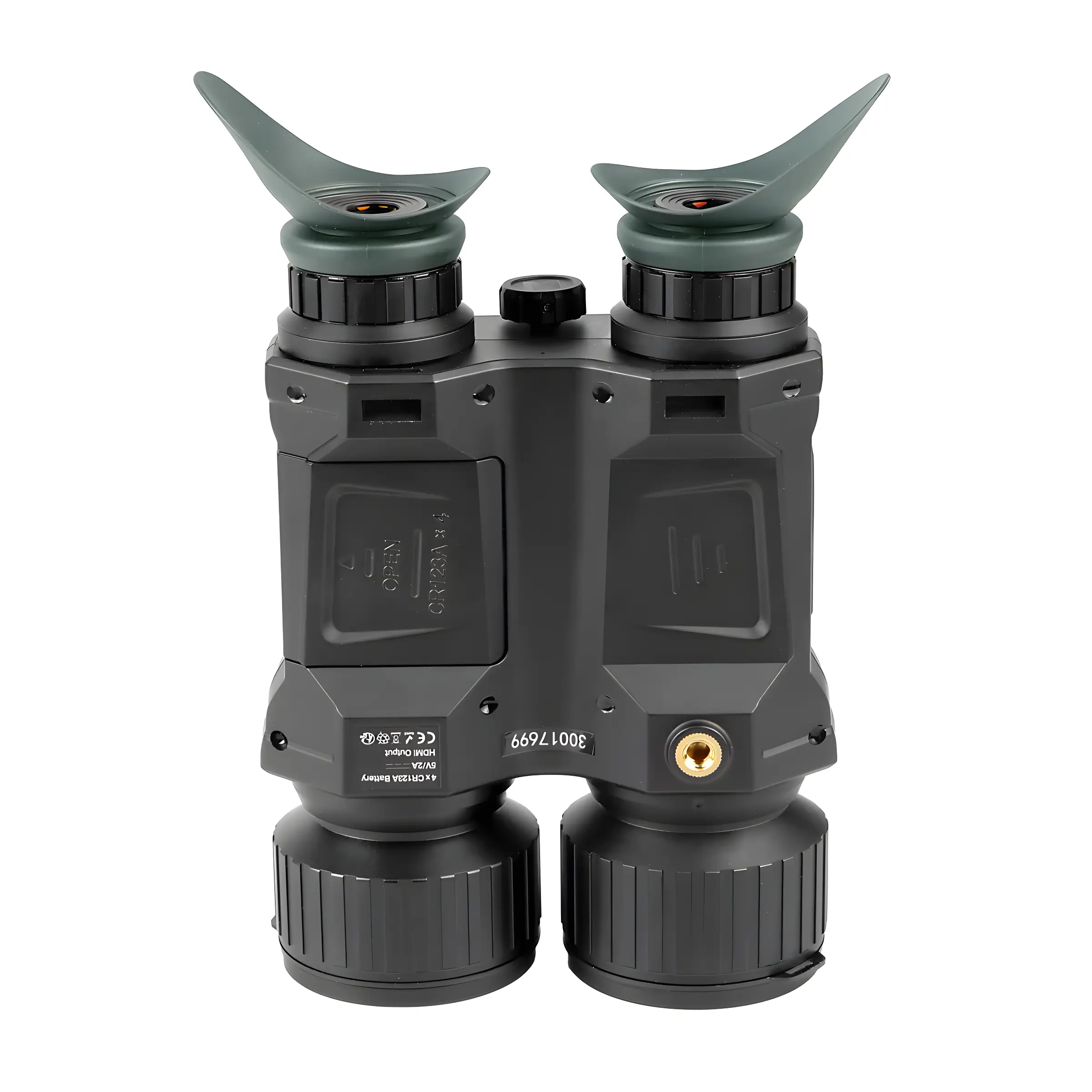 Бинокулярная схема наблюдения значительно снижает нагрузку на зрение по сравнению с монокулярами — мозг получает привычную картинку для двух глаз. Межзрачковое расстояние регулируется в диапазоне 60-70 мм, а диоптрийная коррекция ±6 дптр позволяет использовать прибор без очков. Вес 800 г и габариты 180x125x65 мм делают его достаточно мобильным для ходовой охоты, но для длительных наблюдений на максимальном увеличении предусмотрена резьба 1/4" под штатив. Кнопки управления вынесены на верхнюю панель и легко находятся на ощупь.