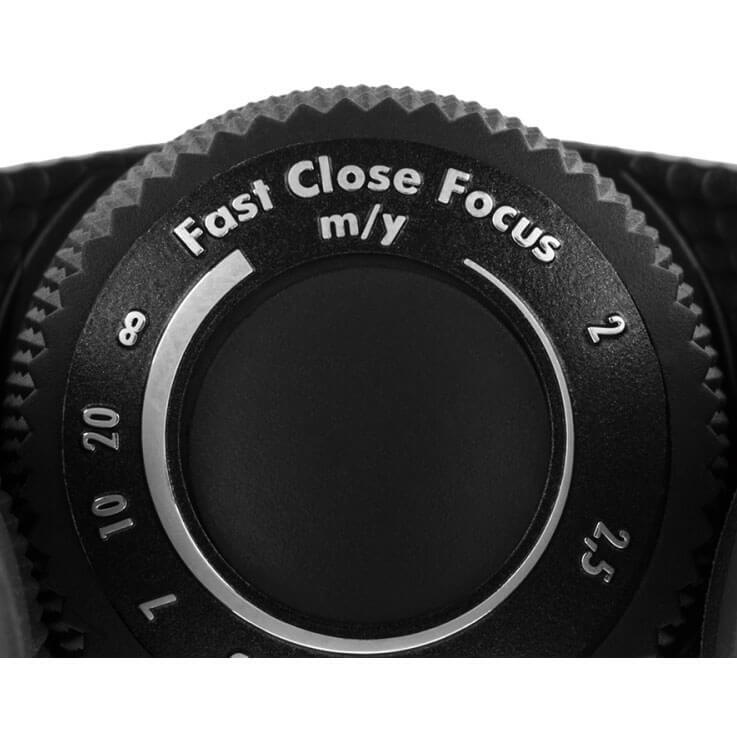 - Небольшая дистанция ближнего фокуса, крупный барабан с разметкой