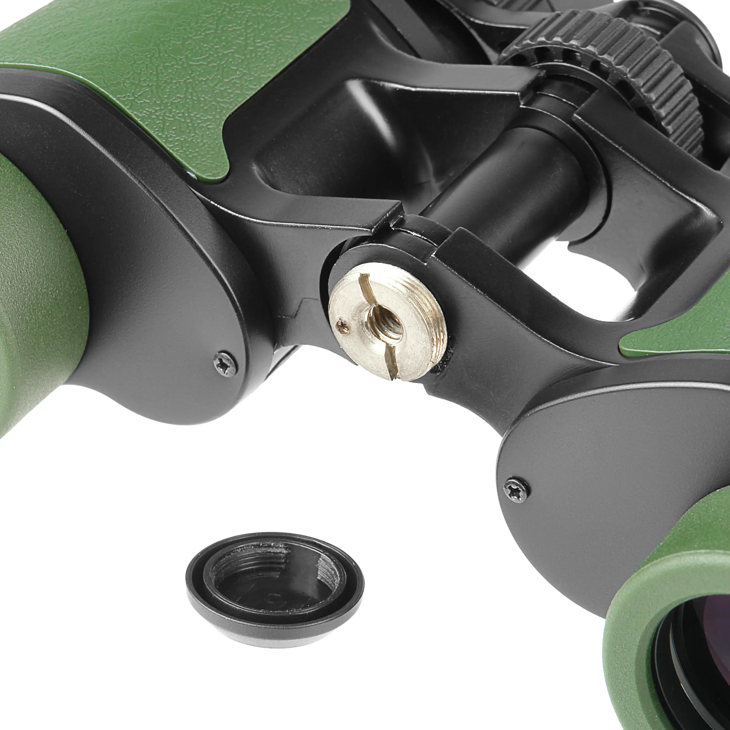 Большое удаление выходного зрачка (18 мм) делает эту модель отличным выбором для наблюдателей в очках. Складные резиновые наглазники позволяют видеть все поле зрения целиком, не снимая очков. Обычно такие детали сильно влияют на комфорт при длительных наблюдениях. Фокусировка осуществляется центральным кольцом, а для людей с разным зрением предусмотрена диоптрийная коррекция в диапазоне ±4. Рельефное резиновое покрытие обеспечивает надежный хват даже в перчатках. К тому же, наличие резьбы 1/4" позволяет установить бинокль на штатив для длительных стационарных наблюдений.
