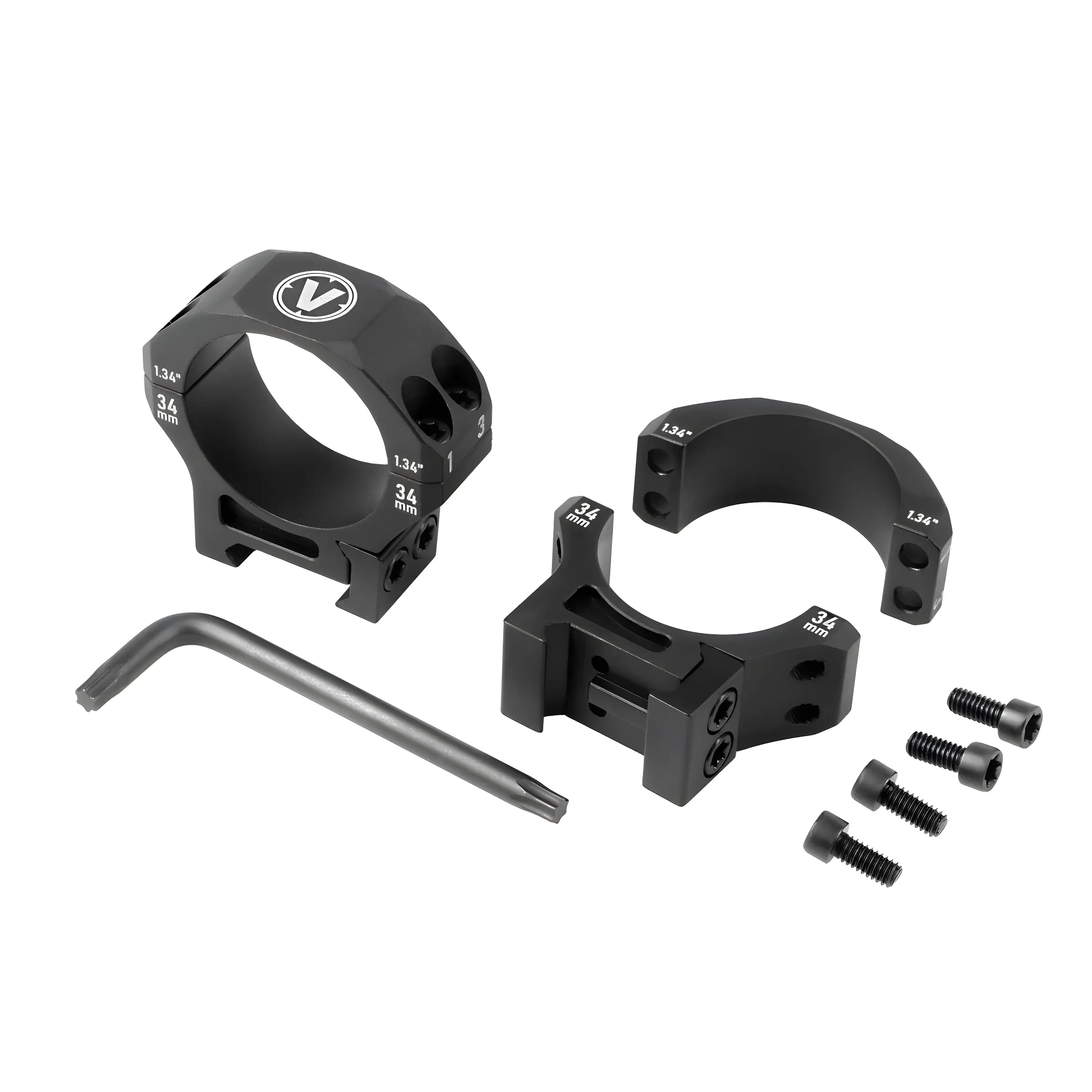 Комплект предназначен для установки оптических прицелов с диаметром центральной трубки 34 мм на оружие, оснащенное планкой Weaver (21 мм). Поскольку 34-я труба — это часто стандарт для мощной дальнобойной оптики, здесь критически важна надежная фиксация без лишнего утяжеления винтовки.