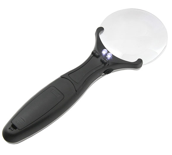 Для работы в условиях плохой освещенности можно использовать встроенную светодиодную подсветку. Яркости двух лампочек хватит для использования лупы даже в полной темноте. Для питания подсветки используются две стандартные батарейки типа АА. Их нет в комплекте, но вы сможете без труда их приобрести.