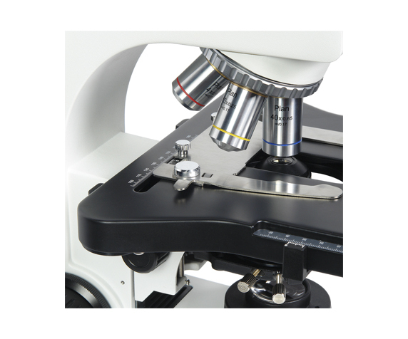 Револьверное устройство на 5 объективов, в комплекте четыре планахроматических объектива 4x/0.13; 10x/0.25; 40x/0.65; 100x/1.25 (oil) с коррекцией на толщину покровного стекла 0,17 мм.