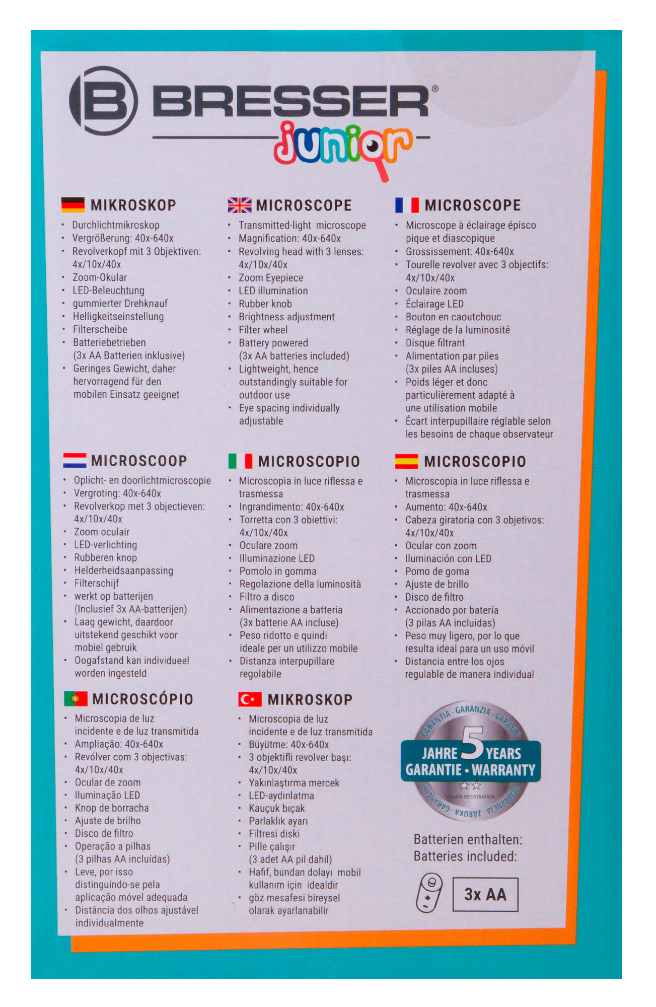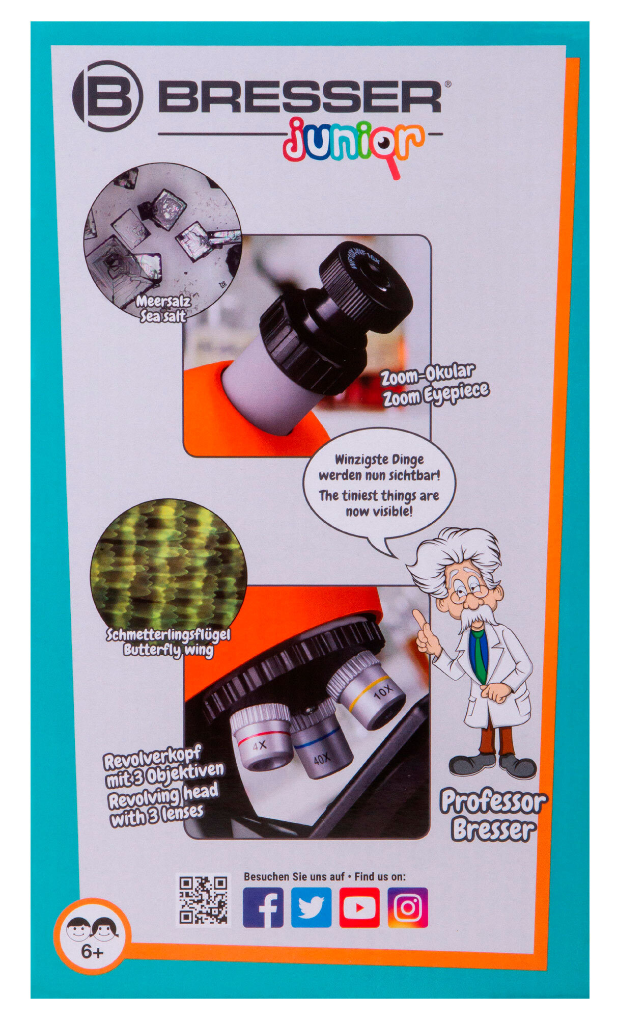 Микроскоп Bresser Junior 40–640x подойдет для учебы или научного хобби любознательного и пытливого ребенка. А благодаря яркому корпусу и стильному внешнему виду микроскоп прекрасно впишется в интерьер детской комнаты.