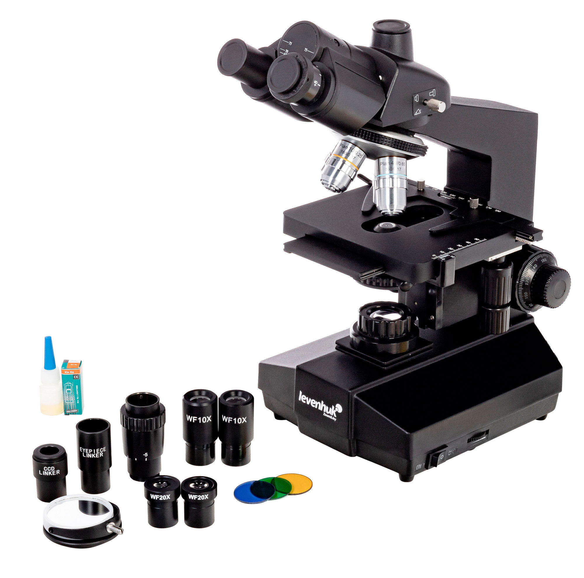 Levenhuk 870T — надежный тринокулярный биологический микроскоп, с помощью которого производится весь спектр наблюдений в светлом поле. Широко используется в медучреждениях разного типа для урологических, дерматологических, биологических, биохимических, патологоанатомических, цитологических и общеклинических лабораторных исследований. А поскольку это тринокуляр, в комплекте с камерой-окуляром (приобретается отдельно) его можно без проблем использовать в качестве цифрового микроскопа.