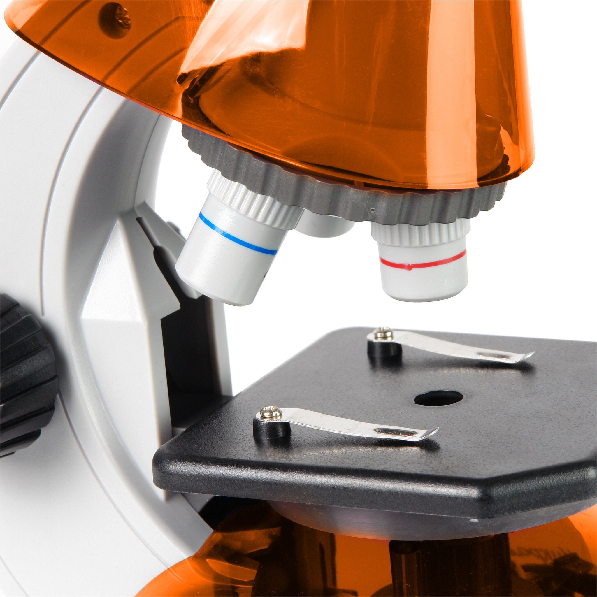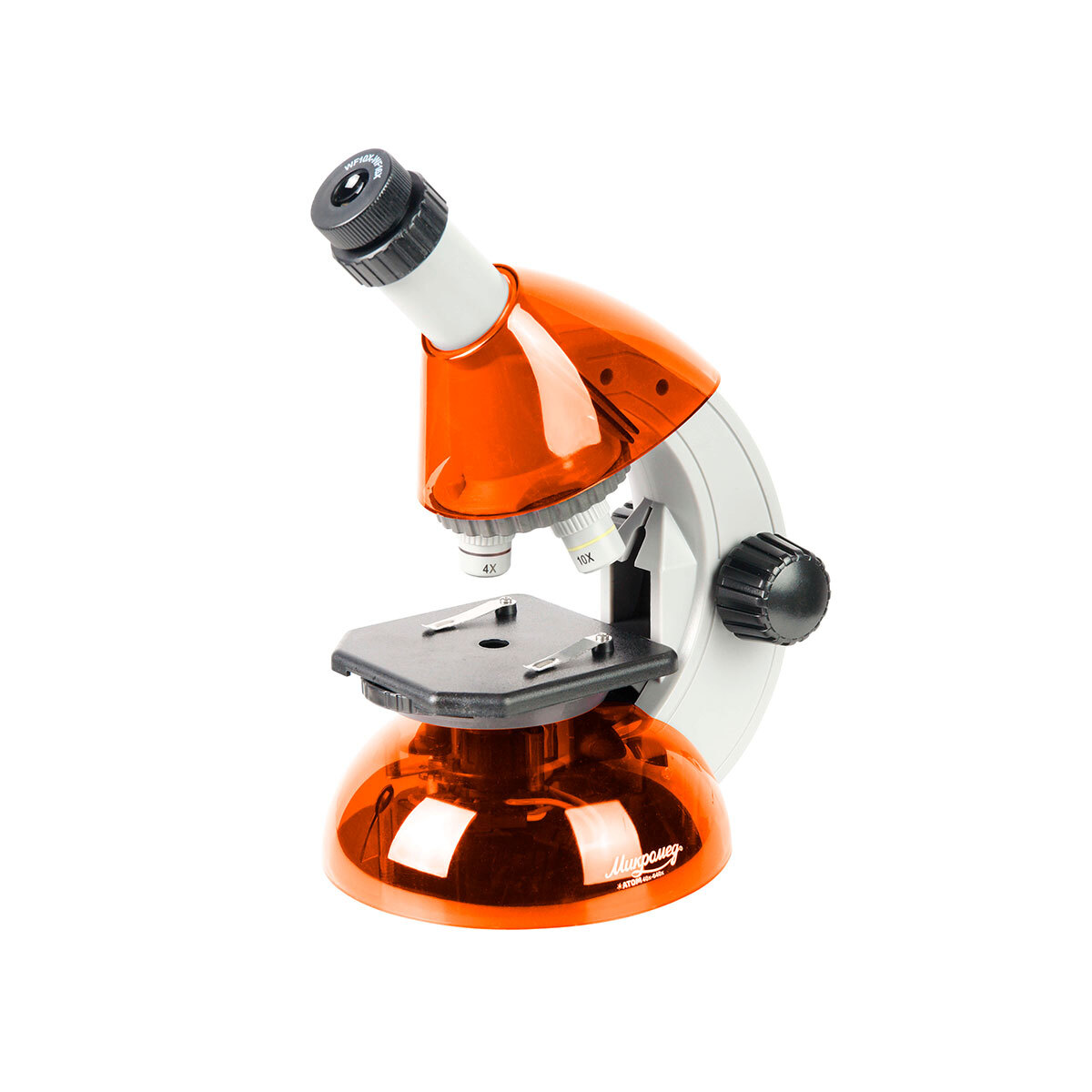 Микромед Атом 40x-640x (апельсин) – детский микроскоп со взрослыми возможностями для изучения микромира. Прибор позволяет исследовать в проходящем свете прозрачные и полупрозрачные биологические объекты: тонкие срезы, пленки, чешуйки, разнообразные жидкости.