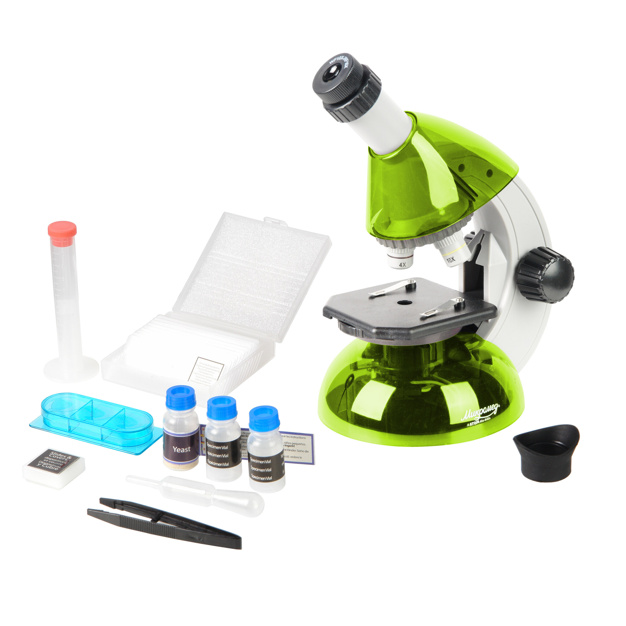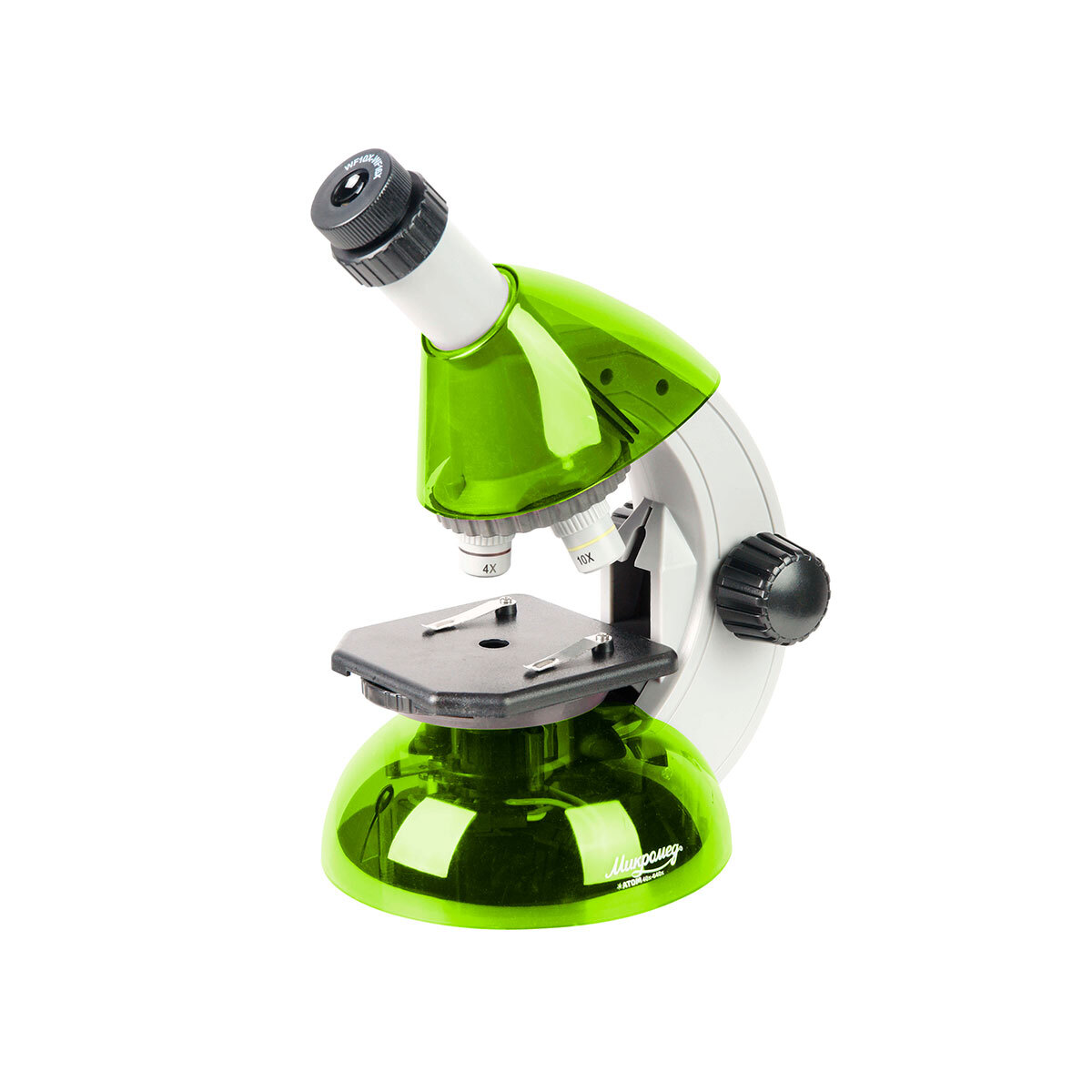 Микромед Атом 40x-640x (лайм) – детский микроскоп со взрослыми возможностями для изучения микромира. Прибор позволяет исследовать в проходящем свете прозрачные и полупрозрачные биологические объекты: тонкие срезы, пленки, чешуйки, разнообразные жидкости.