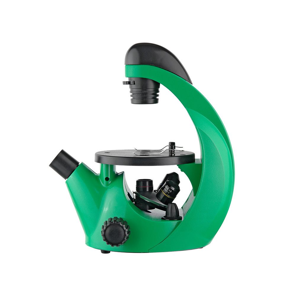 Основное отличие инвертированных (перевернутых) микроскопов от прямых в том, что объективы расположены снизу под объектом наблюдения, а осветительный конденсор сверху. Такая конструкция микроскопа значительно расширяет возможности проведения научных исследований. Можно исследовать биологические объекты зафиксированные на предметном стекле, изучать биокультуры непосредственно в стеклянной лабораторной посуде с питательной средой, наблюдая за развитием культур через стеклянное дно посуды, наблюдать результаты химических реакции в стеклянной лабораторной посуде (чашки Петри, колбы).