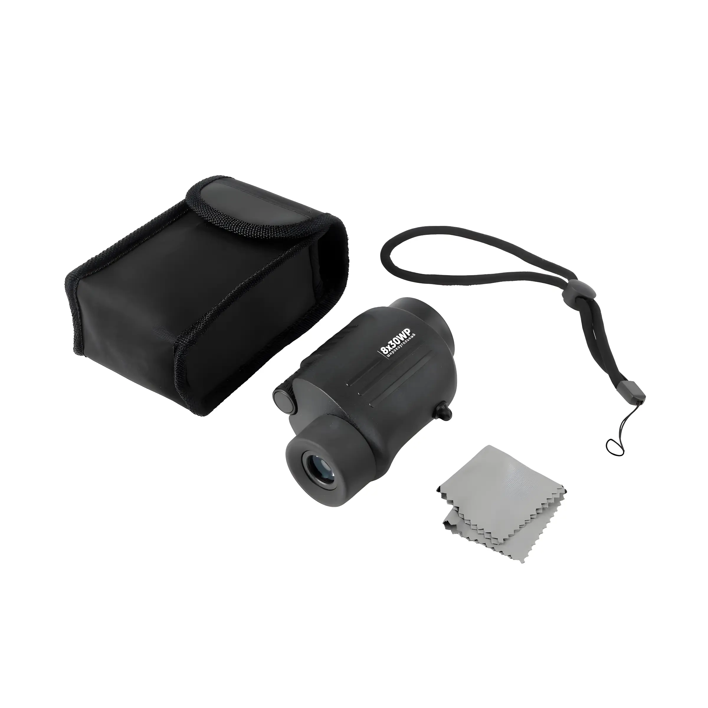 Корпус выполнен из комбинации ABS и PVC-пластиков, устойчивых к ударам и перепадам температур. Прибор имеет класс защиты от влаги (IPX6). Это не просто защита от сырости, а способность выдерживать сильные струи воды, поэтому монокуляр можно смело использовать под проливным дождем или в лодке, где неизбежны брызги.