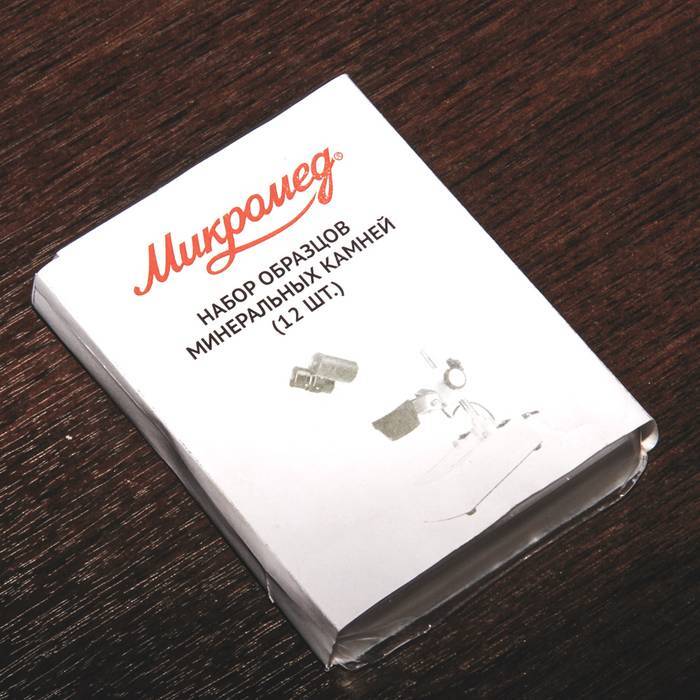 Набор образцов минеральных камней (12 шт.) для изучения под стерео-микроскопом.