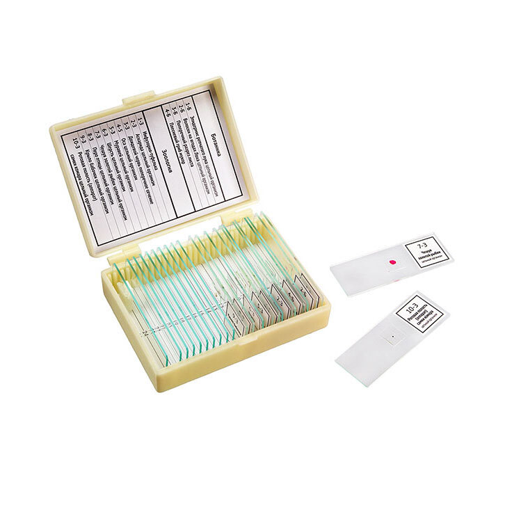 Наборы готовых препаратов для микроскопа специально созданы для проведения самостоятельных исследований. Препараты сгруппированы в 3 набора: