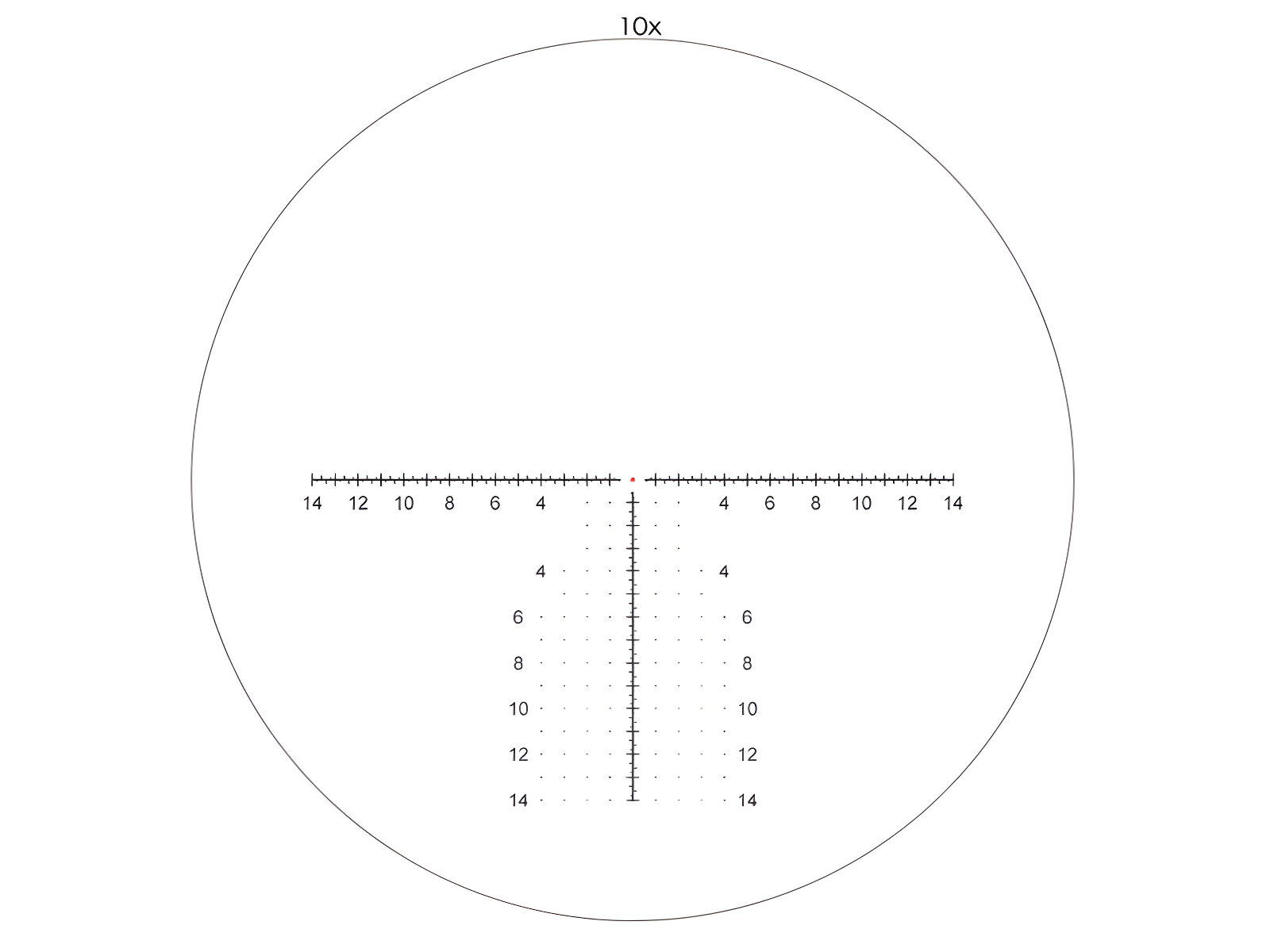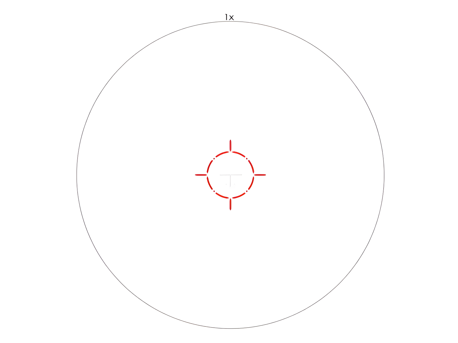 Сетка AM1102 расположена в первой фокальной плоскости (FFP). Это значит: при любом увеличении размеры засечек остаются актуальными для расчёта поправок — удобно при стрельбе с переменной кратностью. Сама марка — прерывистый круг с T-засечками — помогает быстро захватить цель и сделать выстрел «на отдачу», не теряя ориентира.