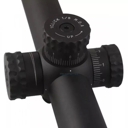 Барабаны выверки по типу тактических: высокие, с подпружиненной блокировкой настроек и крупной накаткой на поворотной части для удобства работы в перчатках. Клики чётко различаются на слух, цена деления 1/8 МОА или 3,125 мм за один клик на дистанции 100 м.