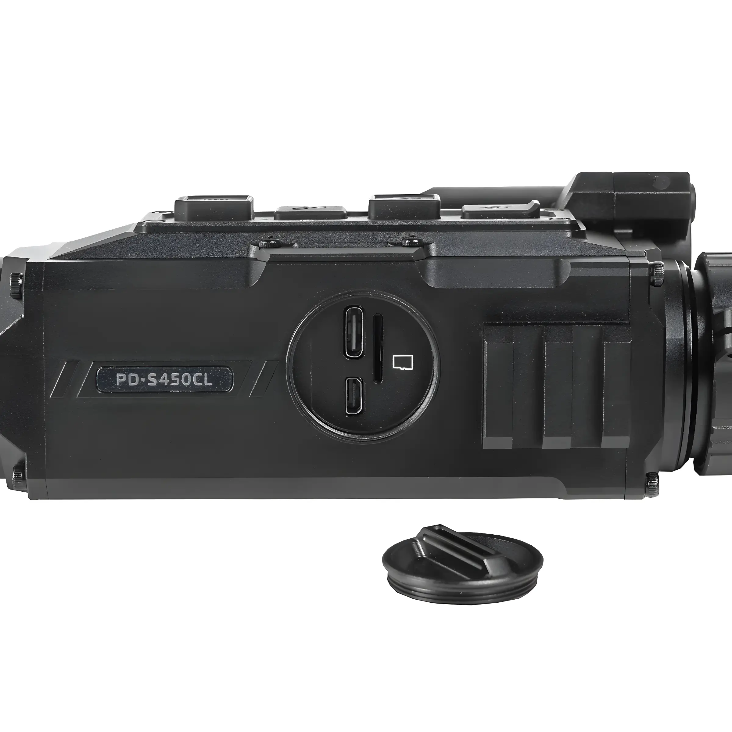 Корпус из алюминиевого сплава защищен от влаги по стандарту IP67, допуская кратковременное погружение в воду до 1 метра. Прицел адаптирован к российским условиям и работает в диапазоне температур от -30°C до +55°C. Питание обеспечивает сменный аккумулятор 18650 (3200 мАч в комплекте), которого хватает на 5 часов работы, также есть возможность подключения внешнего питания через USB Type-C. Важный момент эргономики — удаление выходного зрачка 100 мм, что гарантирует безопасность глаз при стрельбе крупными калибрами. Кнопки управления имеют разную высоту для интуитивной настройки на ощупь.