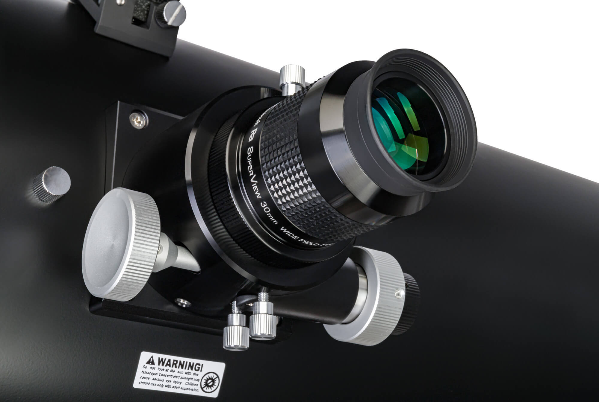 Помимо оптической трубы и монтировки в комплектацию включены оптические аксессуары: окуляр 9 мм, окуляр 30 мм и искатель 8x50 мм. Они позволят сразу приступить к наблюдениям.