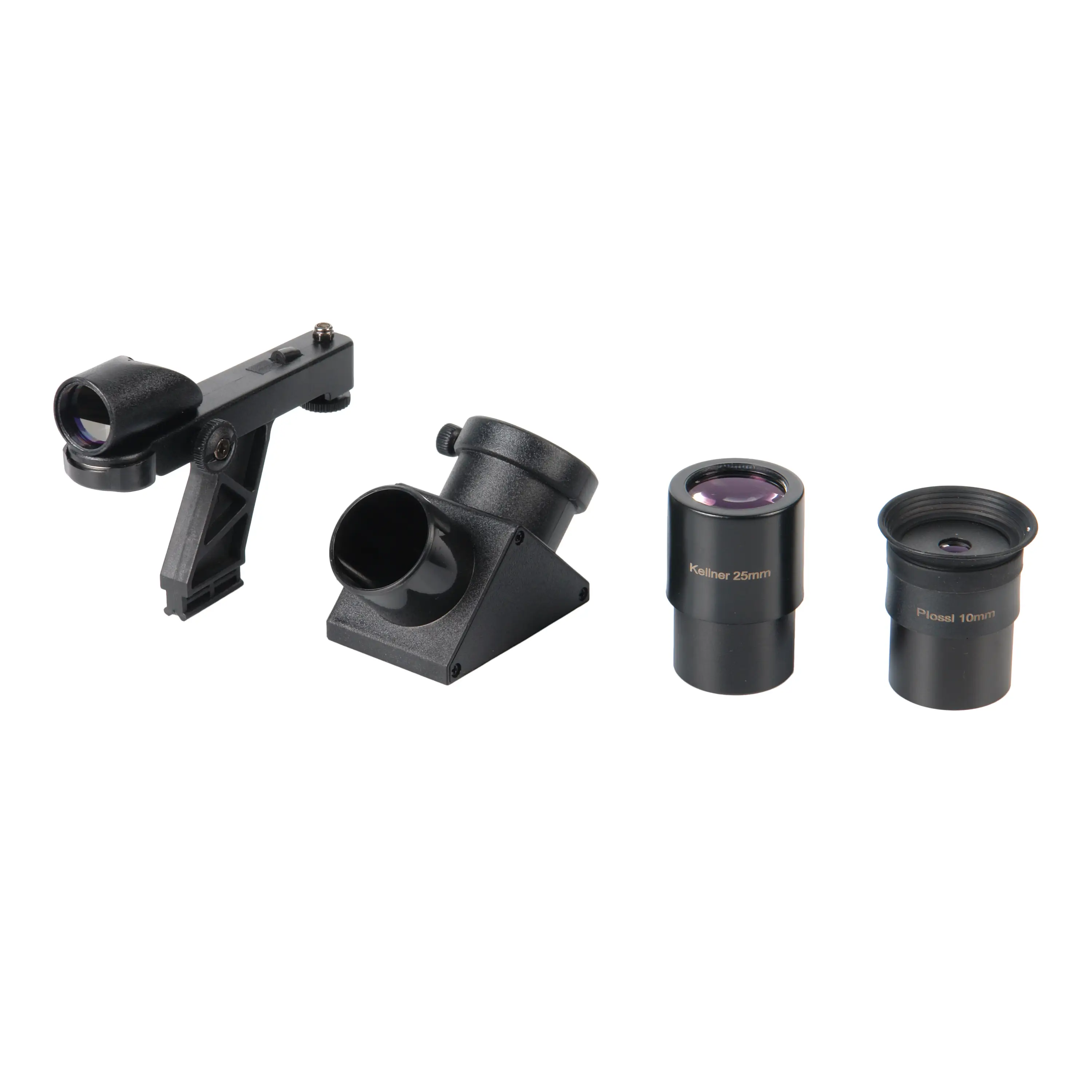 Апертура 90 мм собирает достаточно света для четкой картинки, а полное многослойное просветление (FMC) существенно повышает контраст изображения. В комплекте идут два окуляра под разные задачи: Плёссл PL10 для детального изучения на кратности 120х и Кёльнер K25 для обзорных наблюдений с увеличением 48х. Диагональная призма 90° обеспечивает комфортный угол обзора и, что важно, дает прямое неперевернутое изображение.