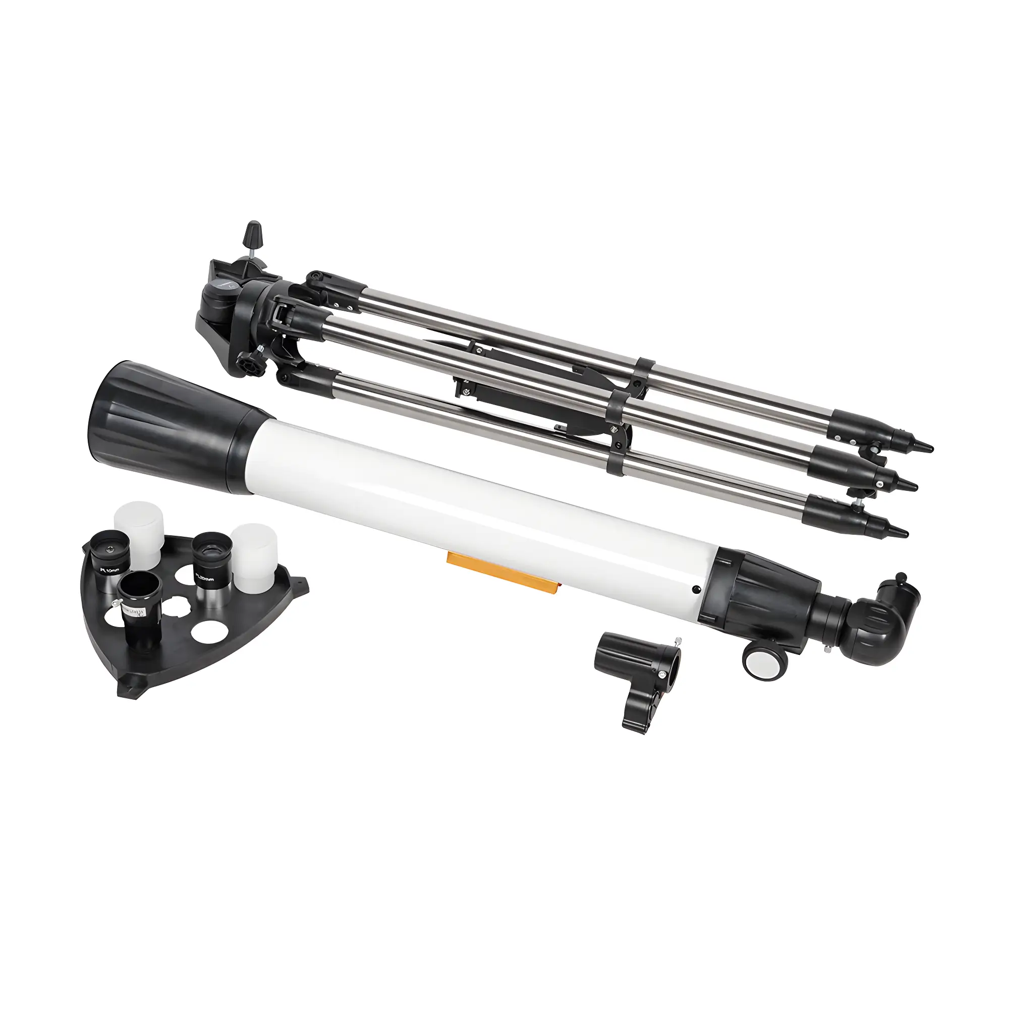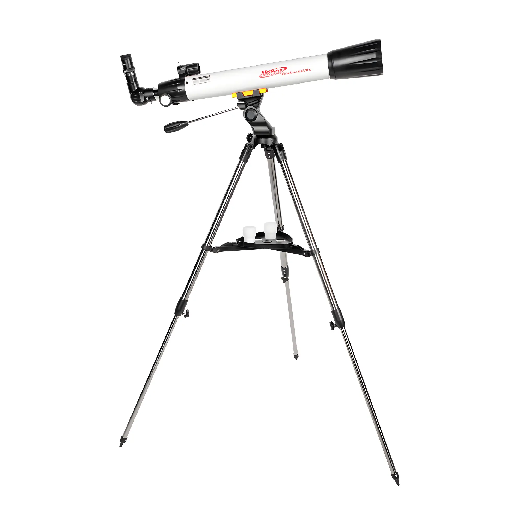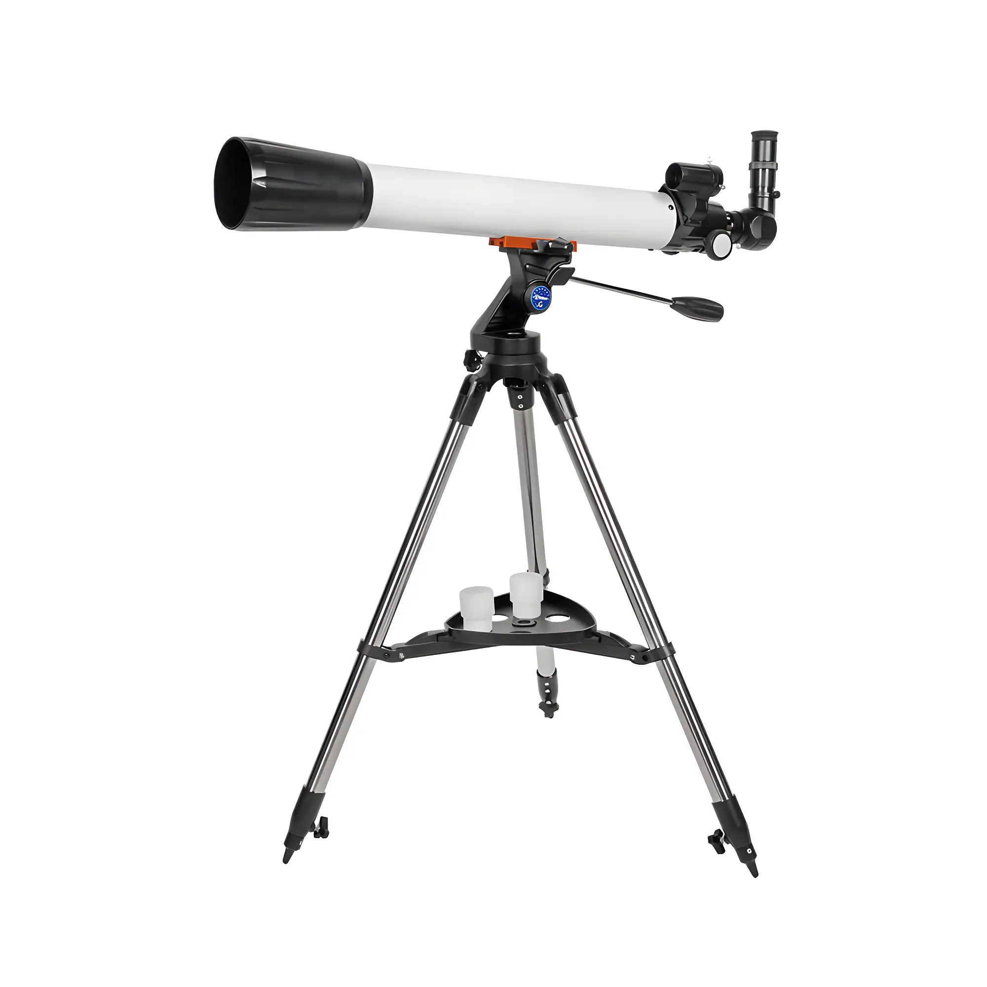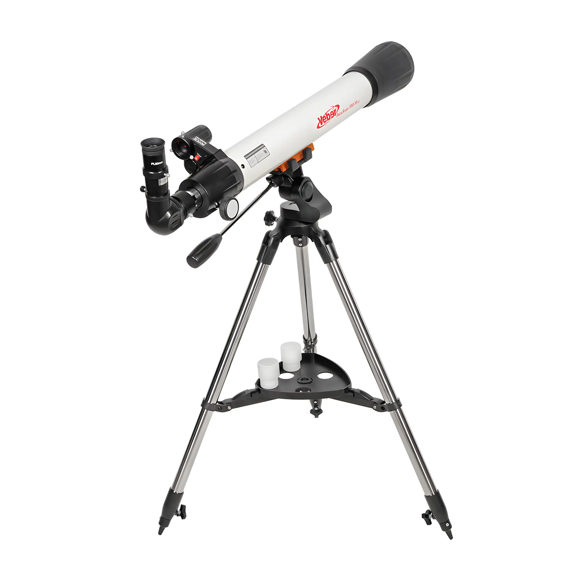 Управление осуществляется через азимутальную монтировку (AZ), интуитивно понятную новичку: труба перемещается вверх-вниз и влево-вправо. Для точного наведения предусмотрена ручка, позволяющая плавно вести объект и фиксировать положение. Устойчивость конструкции обеспечивает штатив из полированной нержавеющей стали с регулируемой высотой от 70 до 110 см и полочкой-распоркой для жесткости.